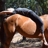 The typical flow of a session will start with grooming, energy centering, and a yoga warm-up. Next, I connect with the horse through acupressure, equine chakras, energy meridians, massage, and yoga poses on the ground. When appropriate, I will mount up bareback for more connecting and poses. Lastly, a cool-down sequence and reflection.
